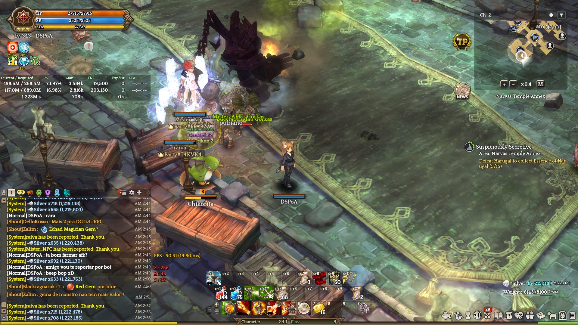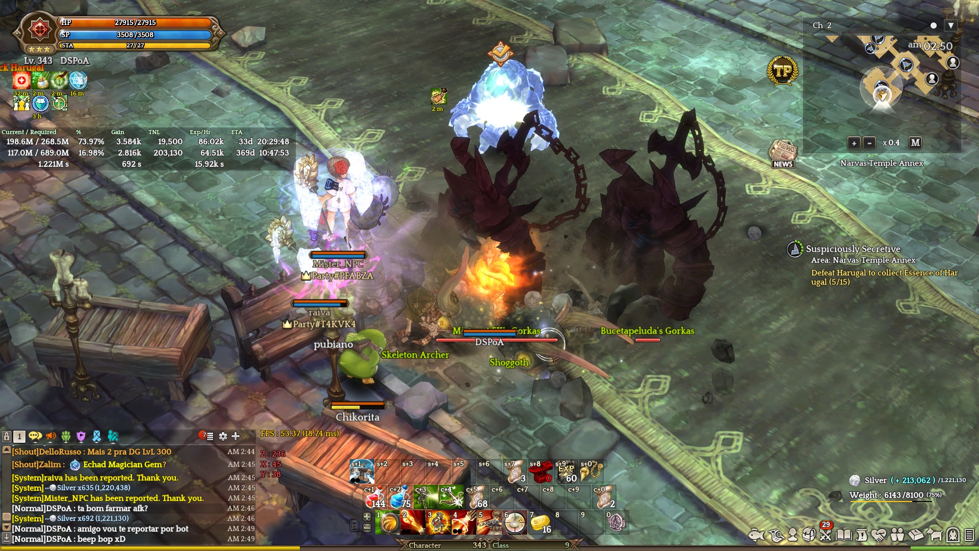 Evidence: Tried to talk to them and after a while with no response I said I would report them for botting. I waited for 10 minutes to take the second screenshot and they still didn’t say anything, just kept using the skills in a regular pattern.Interesting enough the “Mister_NPC” character is called “Mister_AFK”…