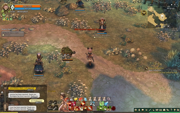 All are moving the same glitchy way, no one said anything when I said they were botting. Character info etc etc they are all clear bots and anyone with eyes can see it.