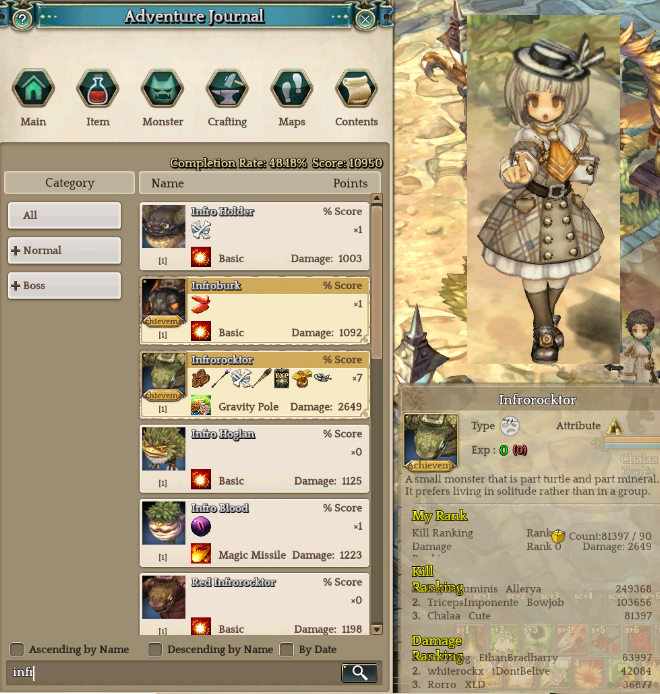 Some off-topic things. For those who want to farm Tini Doll, I think ( or rather hope) I found the evidence that Tini do exist. Not Tini Magician nor Tini Archer, just Tini.