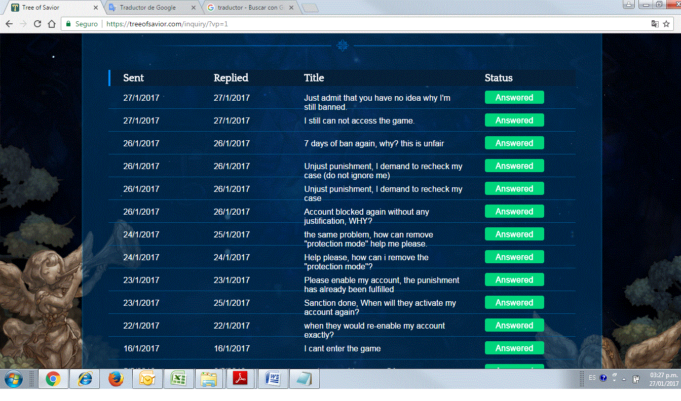 After completing the official sanction of 7 (actually pay 9 days for a error “mode of protection” that IMC took 2 more days to solve), can play a few hours at night when I returned from work, but the next day I would not be able to enter my account again. Send a ticket Informing that my account is ban again. They replied that my account was banned for a 30 day penalty (37 agree?). I had not done anything (this time) for that reason I demanded that they explain to me what the alleged infraction was so they would banish me again. They responded “we reviewed again, effectively you fulfilled your sanction of 7 days, you should again be able to access your account” but it was not so, I continued without access, I sent a ticket stating that I could not access my account, they answered let’s review your problem In detail, wait, then they sent me another ticket that said “you still have 20 days of sanction, please wait”