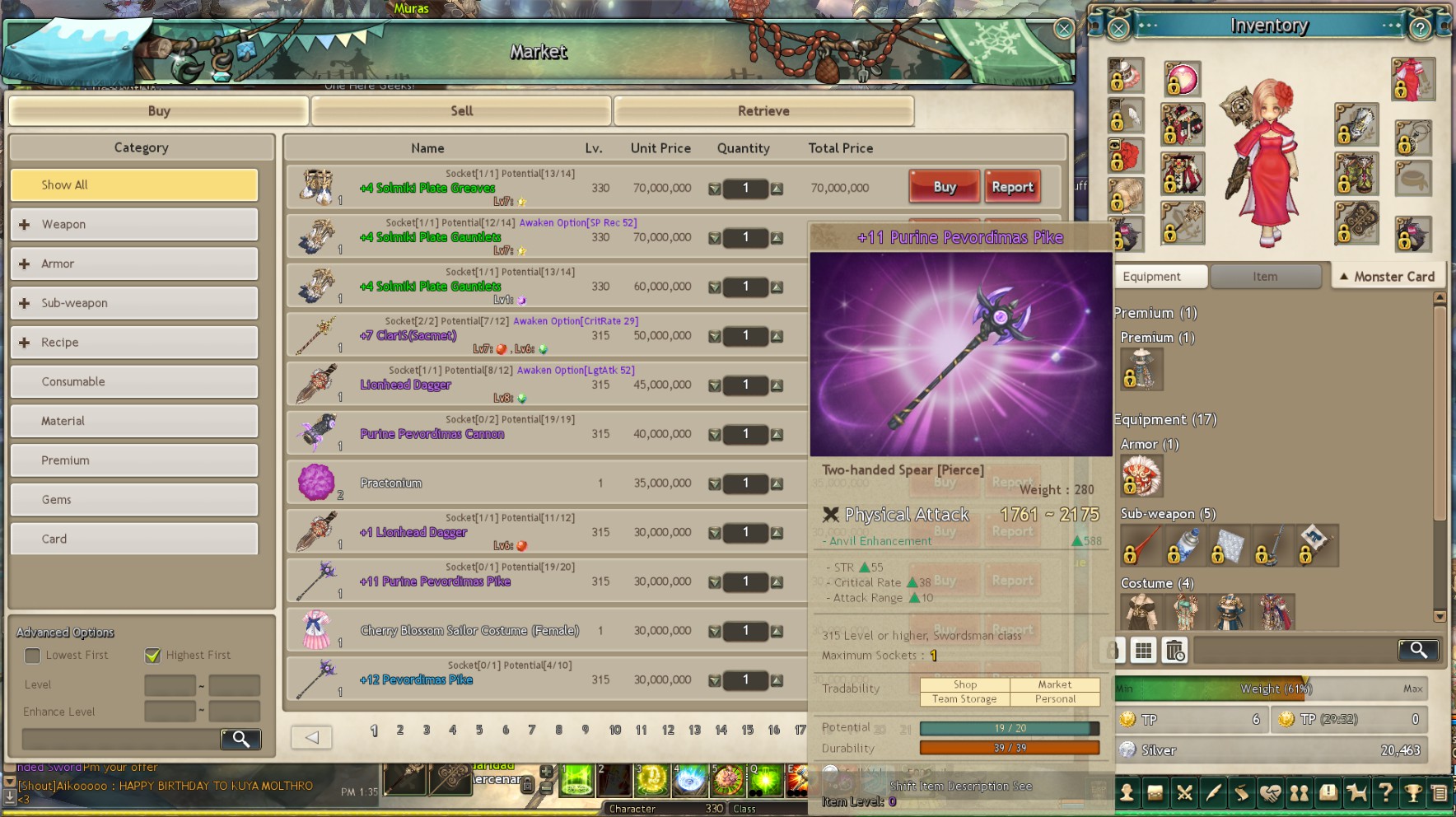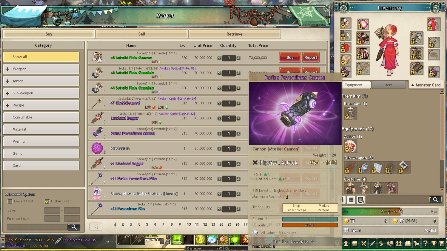 Or less sold my purine bow 1 slot for 8m on ah