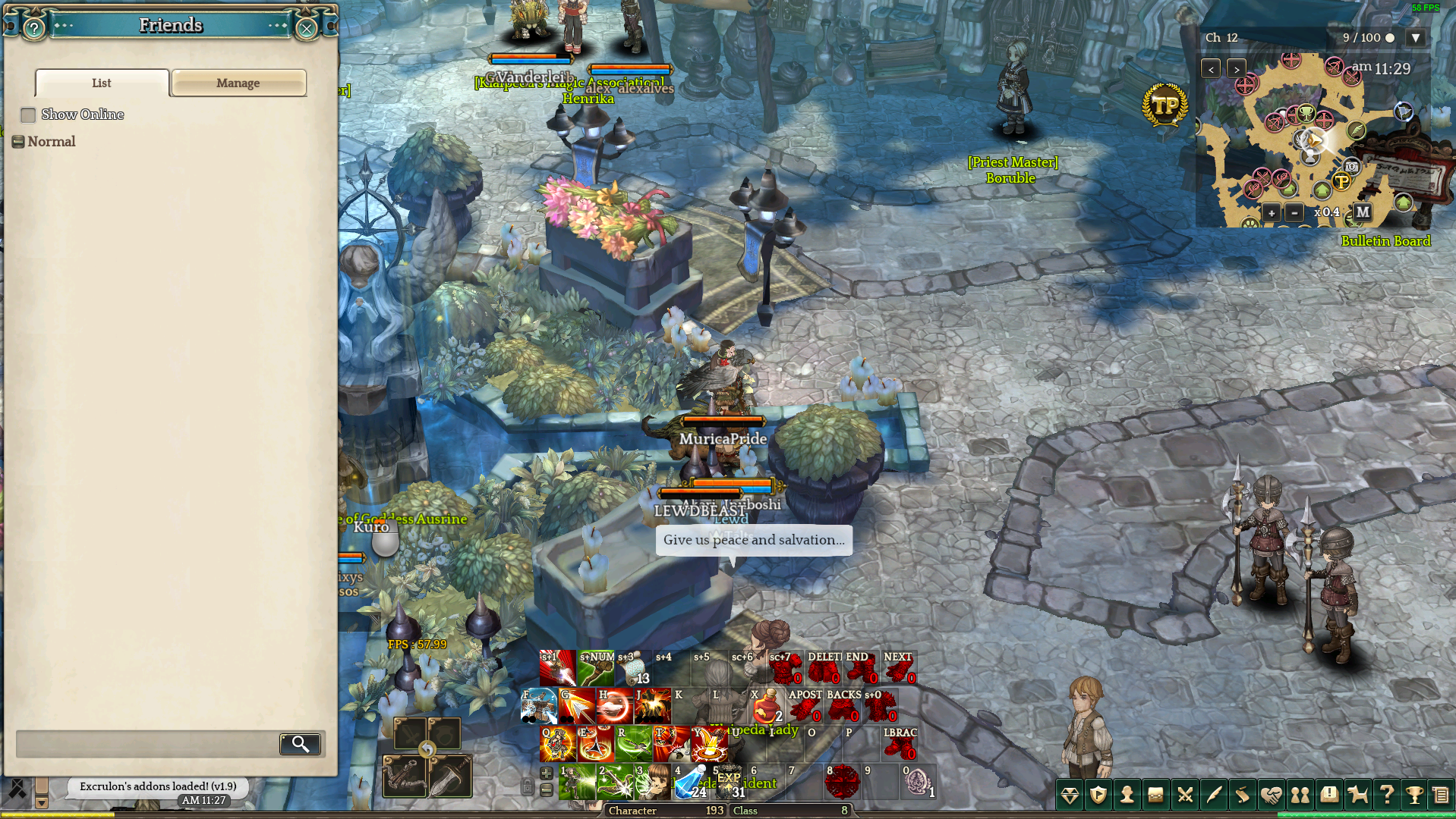 The friend list, shout/guild/party chat are all broken right now. It’s also pretty hard to connect to the SA server.