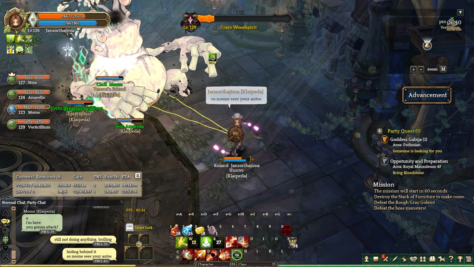Would constantly make excuses on how he needed to feed his dog, go to the door for someone, take care of his baby, and several other excuses. He did this for 2 missions in a row. Knew this was a lie because everytime we would bring the boss to him to see if he was really afk or not, he would run away and heal himself. On the final boss he would consistently hide behind the boss so it was not possible to tell whether or not he was autoing. To further my point, I would aggro the boss away from the party to see if he would continue to do this. He would constantly stay specifically on top the of the boss regardless of whether or not I pulled the boss in any direction to maintain non-visibility of his character. During the torch mission he sat there and literally did nothing, and even admitted to not doing anything as well. This player Cecil Momo is ruining mission experience for not only me, but every other party member that he will run across.
