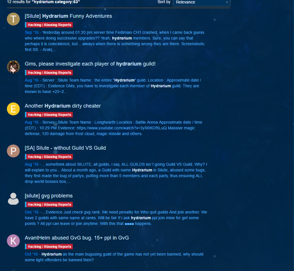About Hydrarium, that IĀ“m not one of them, changed a lot of people that I know that was banned, and some of them go to other guilds. Just saying āhydrariumā wont erase what you did.