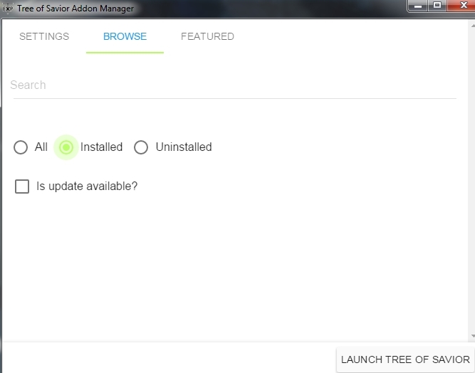 Then click the [Browse] button within Settings and point the addon manager to the folder where your ToS is installed, normally it’s in Program Files (x86)\Steam\steamapps\common\TreeOfSavior.