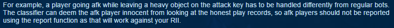 yea, that’s exactly the line i was referring to. “do not use the report bot function to report z-afk’ers, because it might negatively affect your RII”