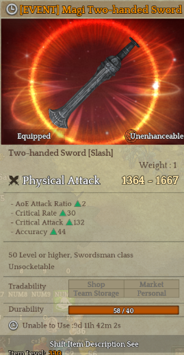 Let’s say you got a party in 315 HG to get that new HG weapon because you don’t have enough gold/materials to get Practo gears or ET gears. 20k DPK for a single cube which you has a chance of dropping randomly in your 5 man party which is also random in getting your desired weapon and which is also random in getting your desired number of slots :< So how long should I party grind these HG’s just to get my desired equipment (Assuming you always get party in a day with random people because you’re lonely and you dont have a guild). It’s got to take you months to achieve it. But you aren’t even halfway of getting end-game contents. You gotta do ET grinds. Farm for your mats for Practo weps, farm silvers for anvil enhancement. Farm blessed shards for transcending equipments. Trust me your blessed shards will be on hold in your inventory because you dont want to transcend a low level item.
