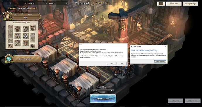 Bug Description : I log in, I can be doing anything and I’ll be fine for anywhere between 30 minutes and 30 seconds, and it’ll send me the error and close the client.