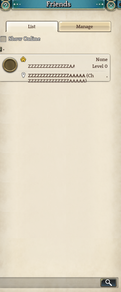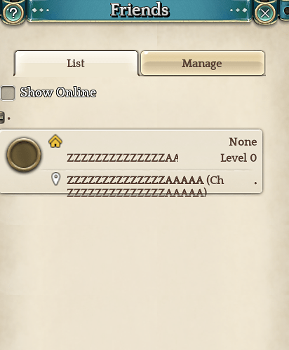 I have friend list issue too after the SEA and EU transfer. Don’t have screenshot but I am on Orsha server. Had 1 friend’s name turn to a blank because he moved to the SEA server. Removed him from my friend list with no problem