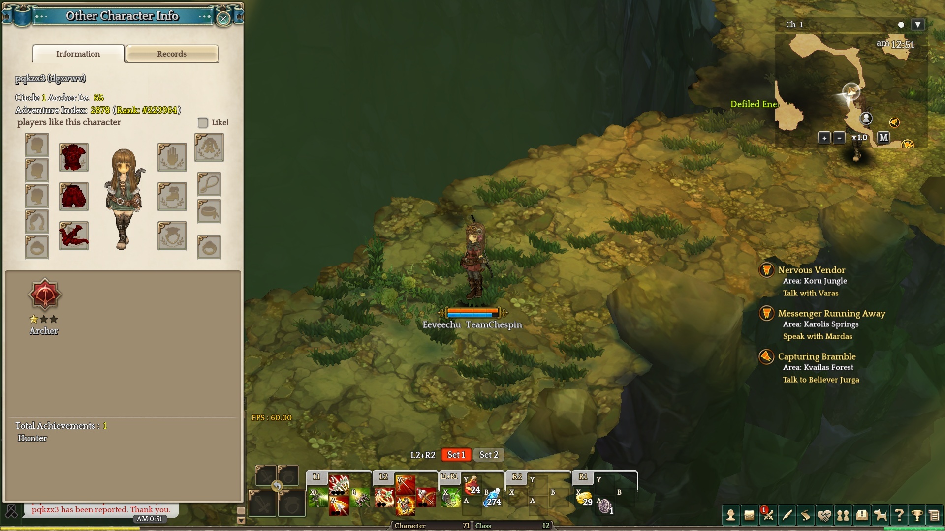 I usually report more cleric bots than archers just because clerics via the report bot option, but these bots were weird so I had to take screenshots for them. Obvious bots because no decent player would run around with broken level 1 gears at level 65+.