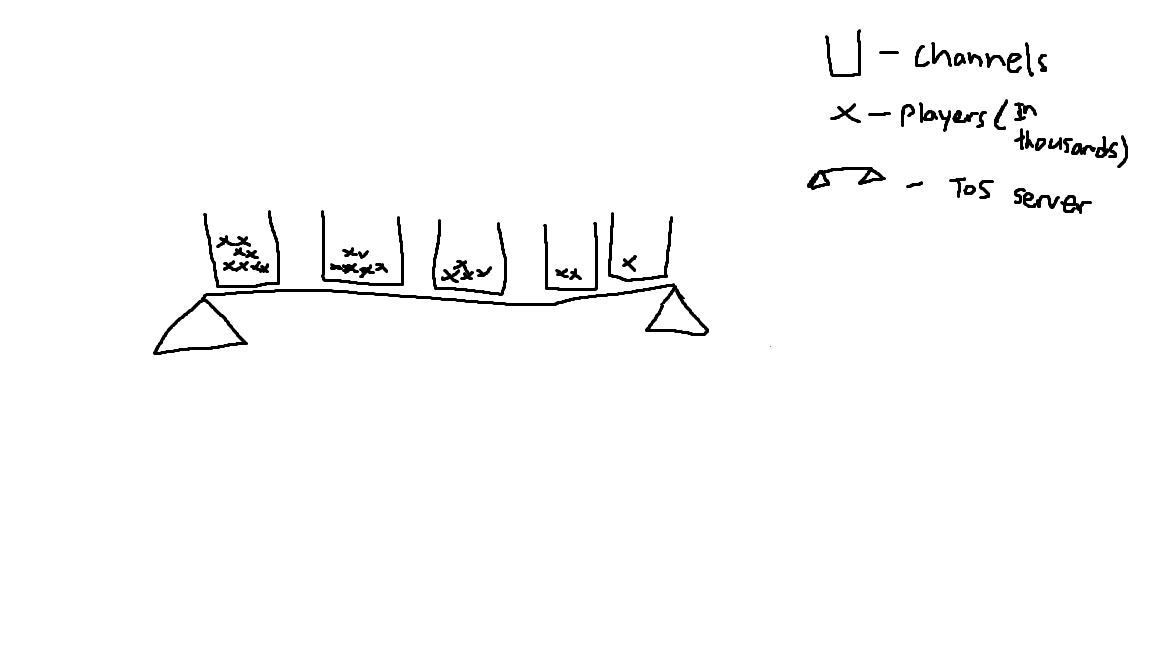Channels - Able to distribute players, have assigned capacity also. If all players gather in one channel it will overflow the channel. The channel will experience lag but not necessary mean that the server can’t handle the capacity.