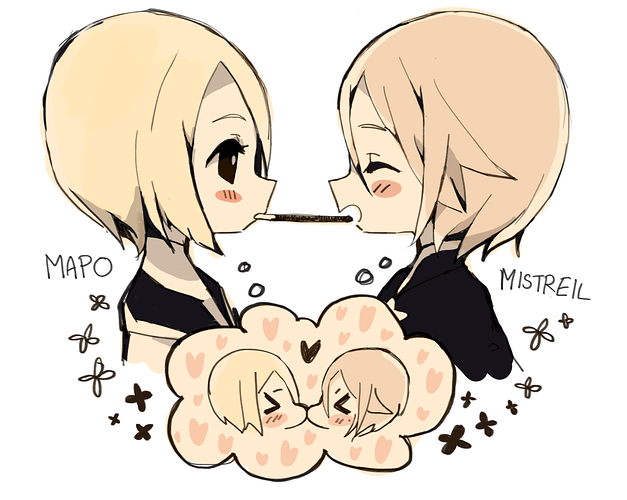 @Mistreil It’s not Pocky Day but this was the only possible kiss after reading your character description! :3c