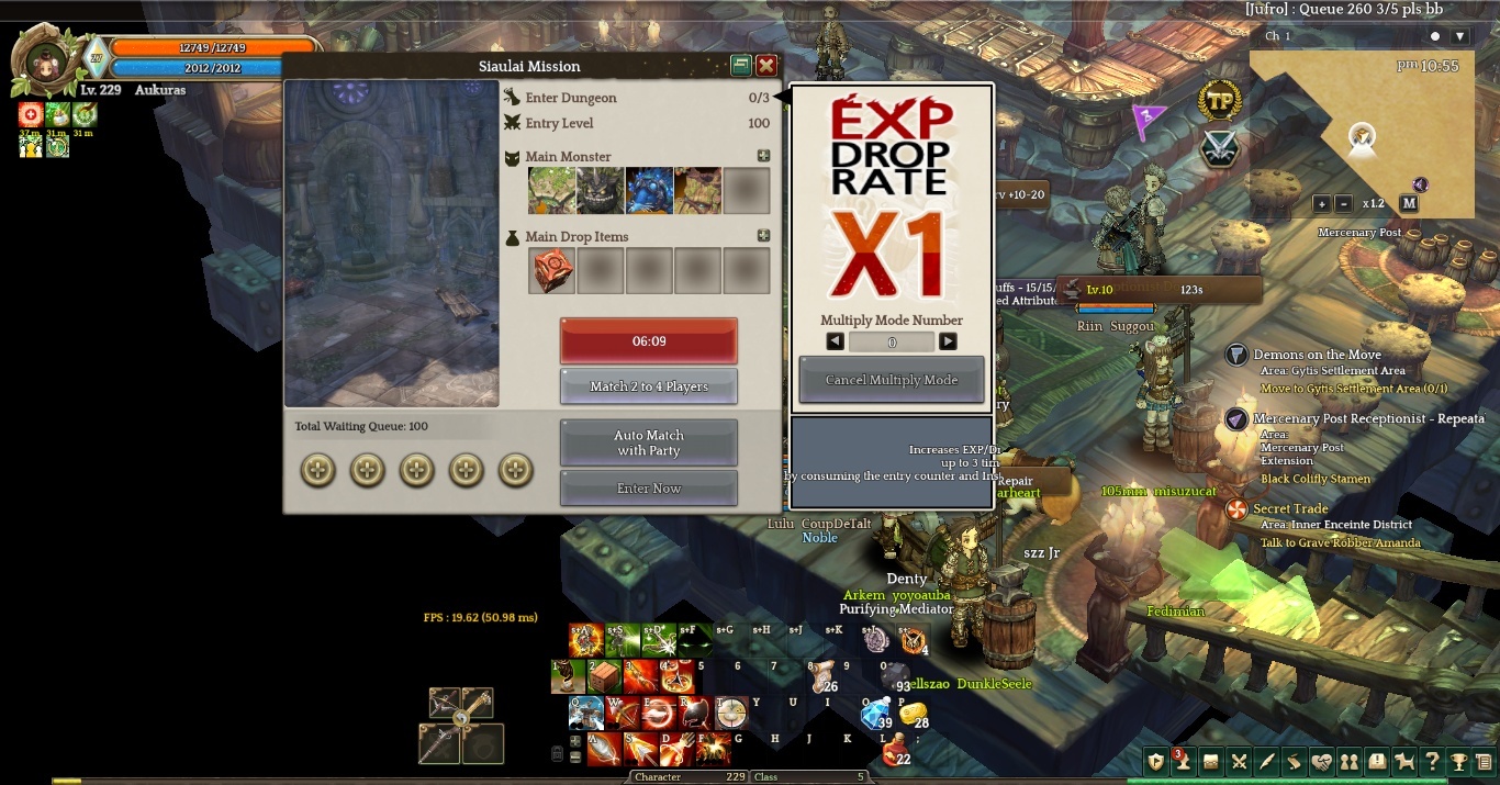 When I queue in Mercenary post or in dungeons the window show me a total waiting queue of 100 and never match me with others even without a sign of progress. This happens with all my characters.