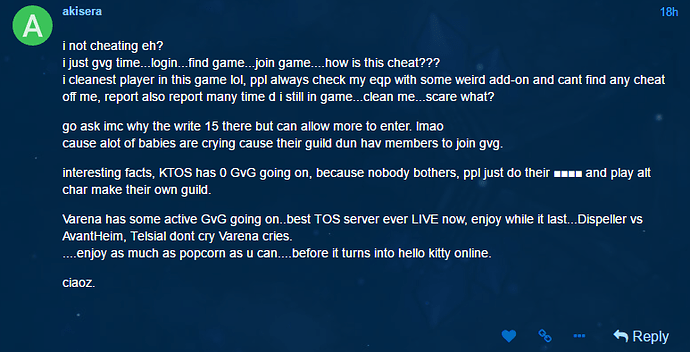 3.If they unlock gvg limit = reduce a chance that small guild can participate in GVG since they have only small chance to win with little member. Note that this is the point. AvantHeim keep saying that the problem is low guild member population, but I disagree with them. Limit 15 each side will allow little guild can easy manage to GVG so huge guild can’t use their advantage.