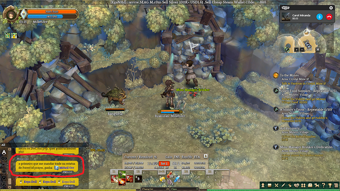 this second image says “The first how send me trade in forest of prayer statue won : Mithril ore”