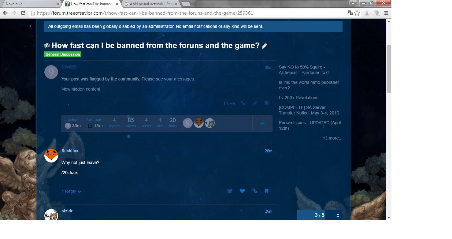 Here, their system took 15 minutes to automaticaly prevent my acc from posting and 30 minutes to ban it, while my tickets are more than 2 weeks old, including my PMs from problems that PREVENTED ME FROM PLAYING THEIR GAME!