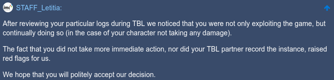 That is basically what I have been saying here in this thread that it was handled extremely poorly. Vaca if anything should have been stripped of their rank and rewards then the other person was like pretty much innocent. They should unban the other person but they have to stick with this stance now or admit doing wrong. Either way of admitting taking hasty action or not unbanning the person looks foolish except unbanning them is the morally right thing to do unless they were a repeated offender.