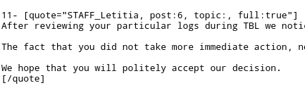 The complete break down of communication and trolling on your part is pretty absurd while comical in part it really shows how disfunctional this server is and hopefully bring some reform on player to Staff relations.