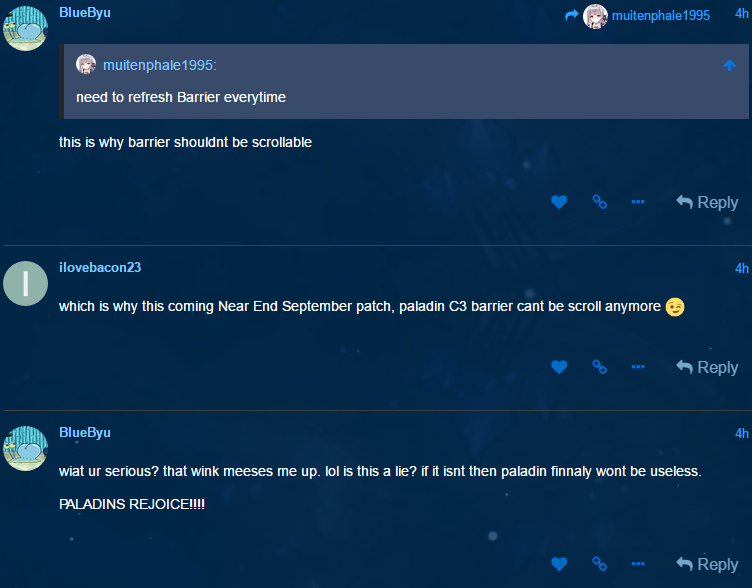 And then every single party would requiere a paladin c3, I’d say 2 because 1 barrier is not enough for ET. I thought what you guys wanted is to make end-game content more diverse, but this would just make ET harder.