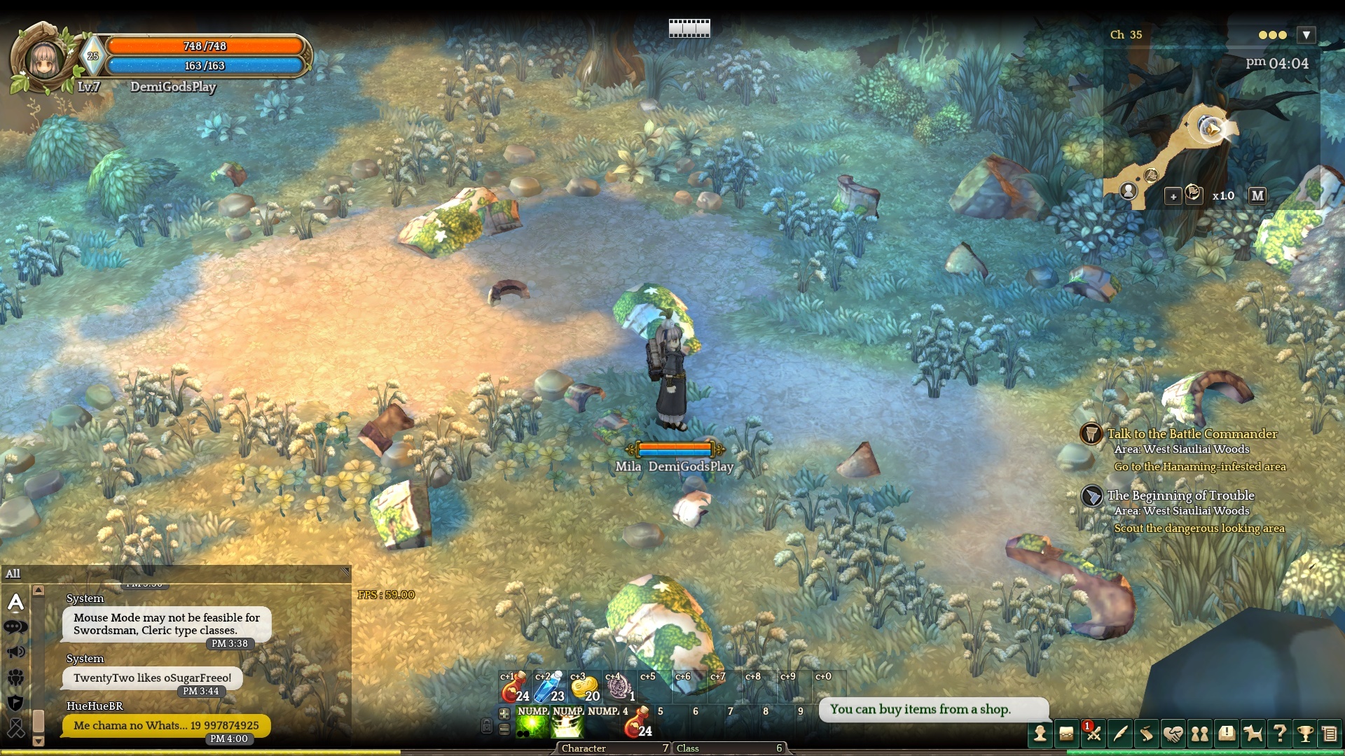 - Accept quest “beginning of trouble”, mouse mode, cleric class