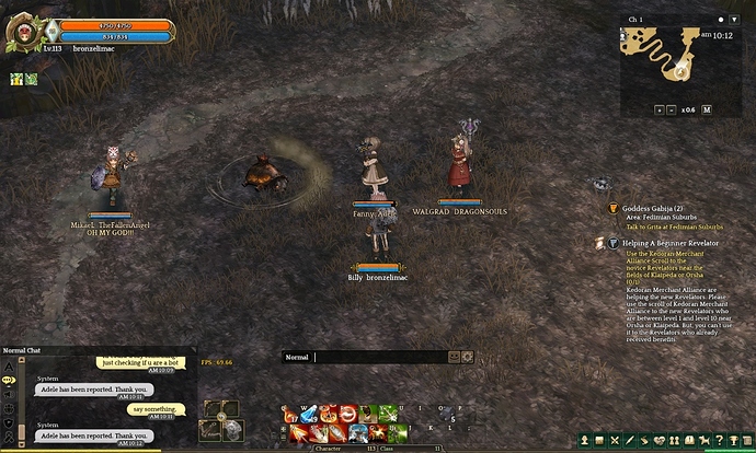Hello, its me…Must be the third time I find this bot called Adele, yesterday morning I reported it while I was at Manahas, and now… when I just arrived in Dvsia peak I found this… surprise Mother#!%@, the same annoying bot that keep KSing me everywhere I go. the report bot option is even workin’?