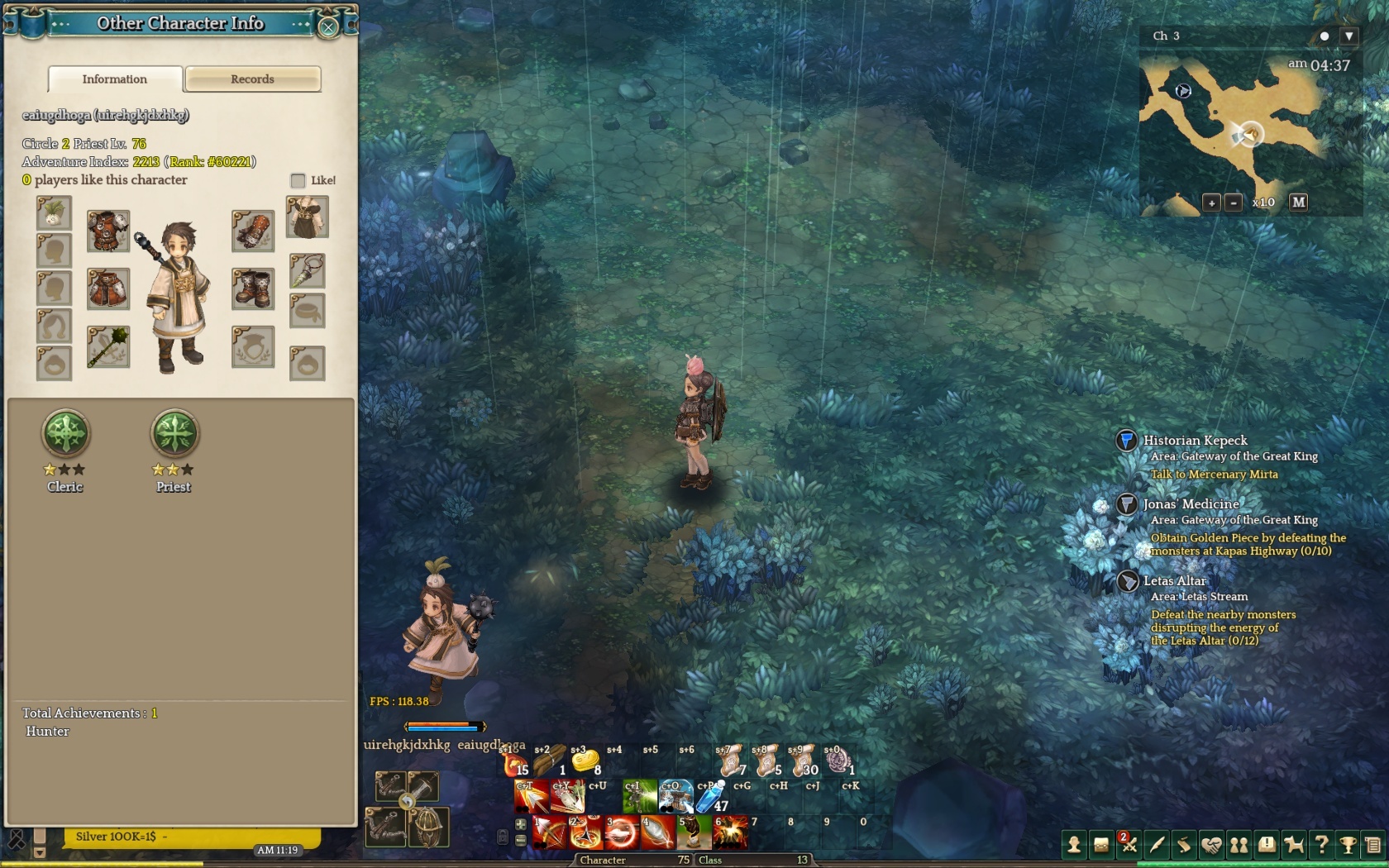 Character/account name, adventure index number, glitchy behavior, killing all mobs (even the ones aggroed on me), wall running