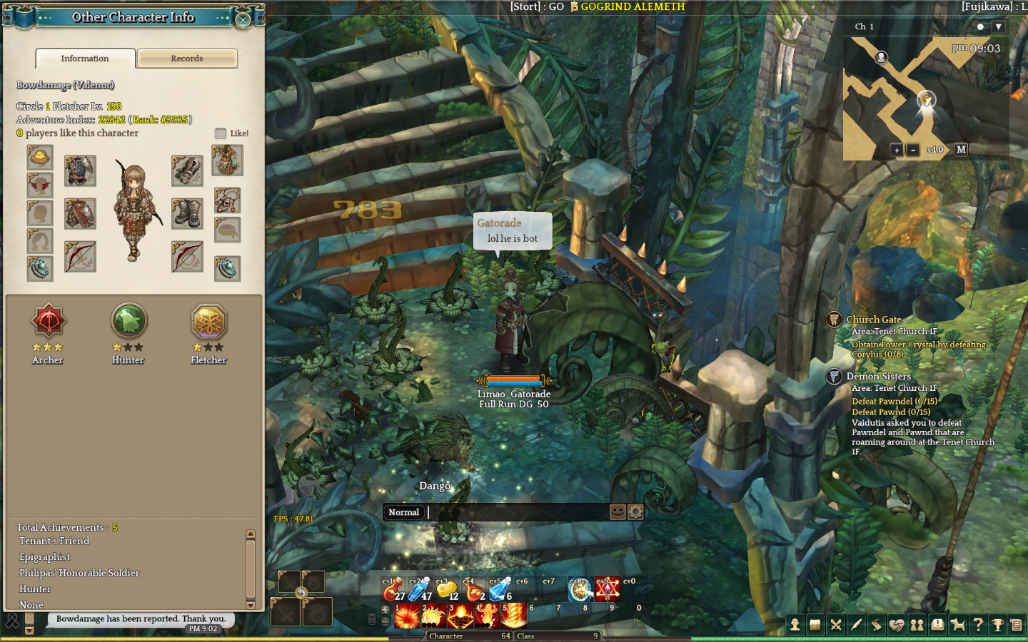 Evidence Using macro or bot to stay atacking monsters afk