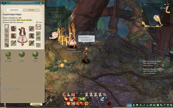Glitchy movement, low adventure index score on all, none replied to me when I confronted them about being bots. Some of these bots seem to have a bit better programming, some jump once in a while and they seem to be mostly focusing only on ravinelasvas. Probably farming click saps and long armbands. This seems to be a really popular location for bots.