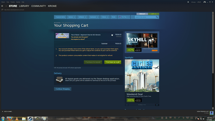 Sorry i wasnt very updated but i bought the Tree of Savior - Beginner’s Pack for SEA Servers and i play on [SEA] Varena but when i checked my account i havent been recieving anything can you help me out? thanks! heres some proof…