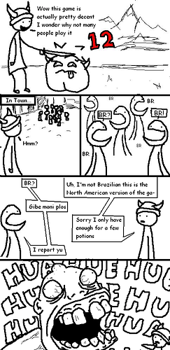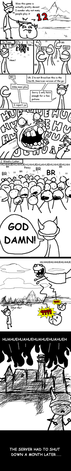 Not ALL, but a good 50+% of them id say at least. I have had many many experiences with them on past mmorpgs, and i’ll tell you it wasn’t pretty. The reason this thread exists is because it’s common occurrence, that BR gamers, in general, i’m not saying as people, but as BR gamers they are toxic and overwhelming. They horde into a lot of mmorpgs like a swarm of rats they only speak their language, they clutter the chat with it, and the worst of the worst they beg and beg and beg. ex: GO UP ME BLS? I CAN HAS ITEN? MONIES?..ahuaehaaehuaehauehaue UP BLS. kkkkkkkkkkkkkkkkkkkkkkkkkkkkkkkkkkkkkkk