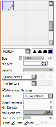 (Usually using a 0.7px brush when doing lineart will give you really nice thin lines. Stabilizer settings also help for smoothness!)