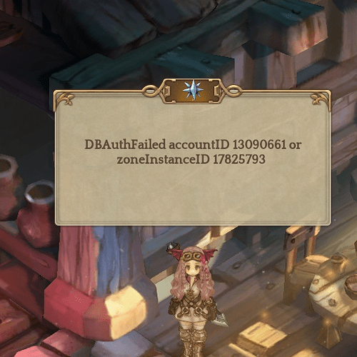 Whenever i try to enter world it says: “DBAuthFailed accountID 59749948 or zoneInstanceID 17825793”