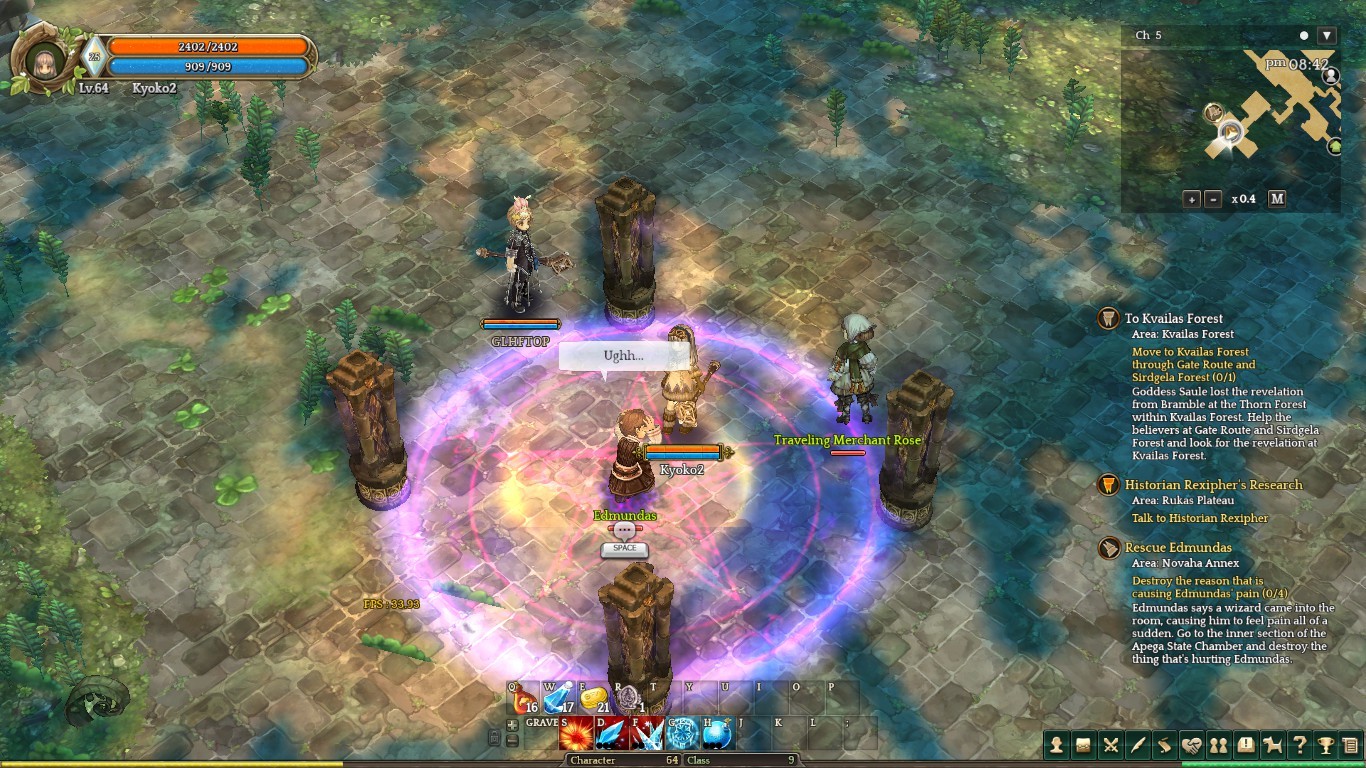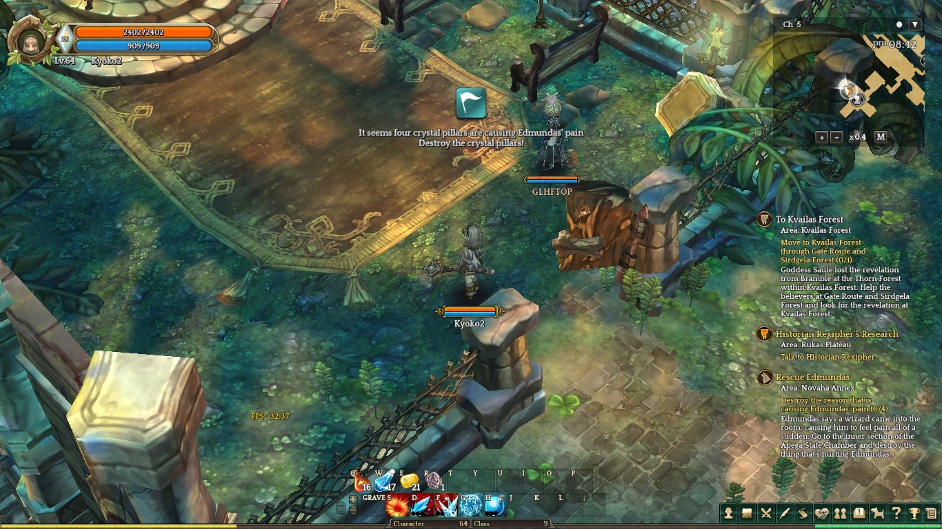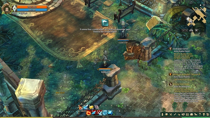 I walk into the quest area and I get a notification on my screen that says “It seems there are 4 crystal pillars causing Edmundas’ pain, destroy the 4 pillars” However, there are no pillars around to destroy.