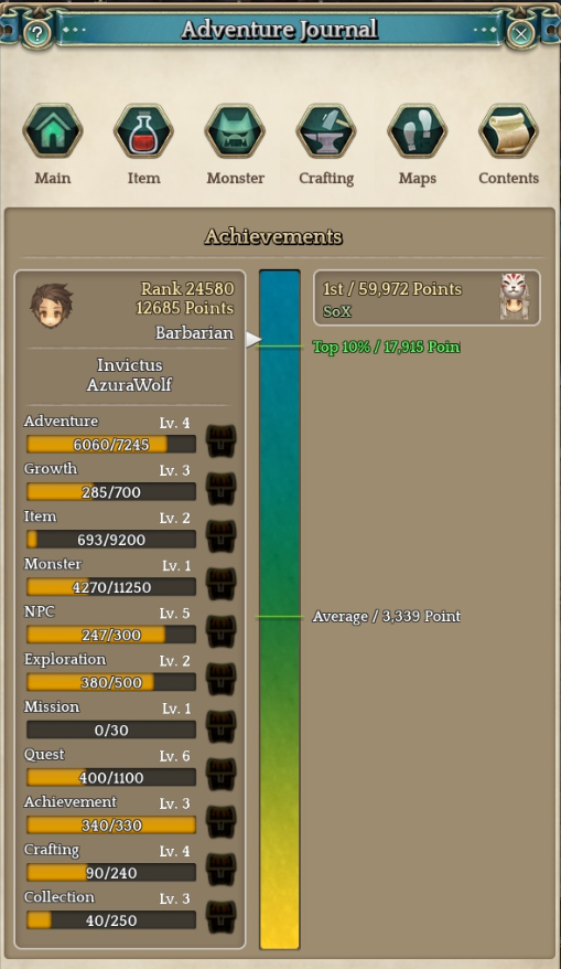 - Achievement with 340/330 ? Shouldn’t it be already levelled up?