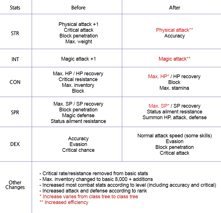 INT: Magic attack. And thats it, what could make this stat good is the note on bottom “increases vary from class tree to class tree”. I believe the new design is gonna make INT boost Wizards way more than clerics. But it is still open to check for more information.