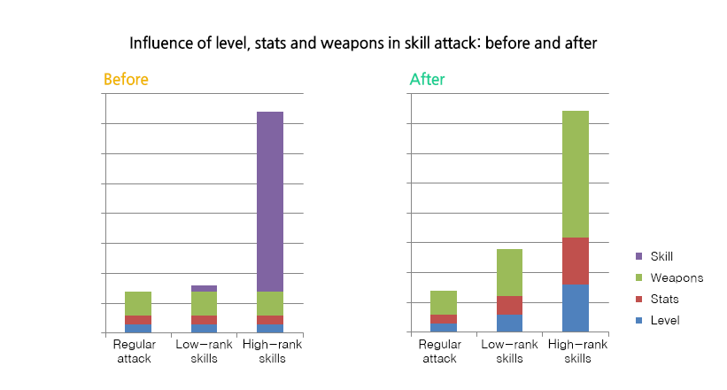 We can see that the “Skill damage” part on both graphs have totally been removed on the revised skill damage formula. This could affect way too much the strengh we know our Lycanthropy provides.