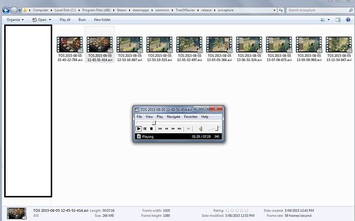 - Press F12 again to finish recording video and save the file to the “TreeOfSavior\Release\avicapture” folder.