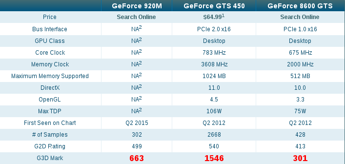 GPU: Nvidia GeForce 920M with 2GB dedicated VRAM