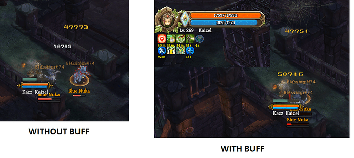 On the left side you can see the Damage 49973 without the buff.