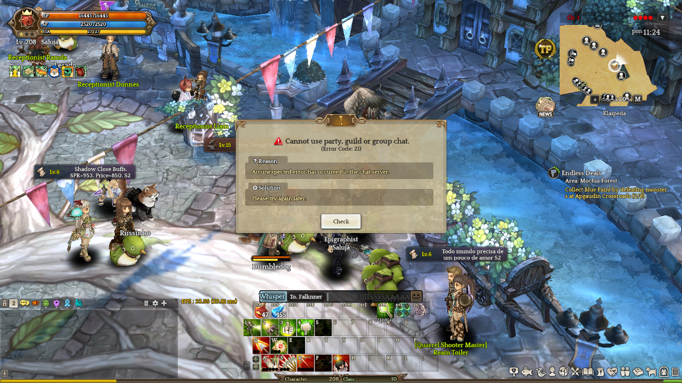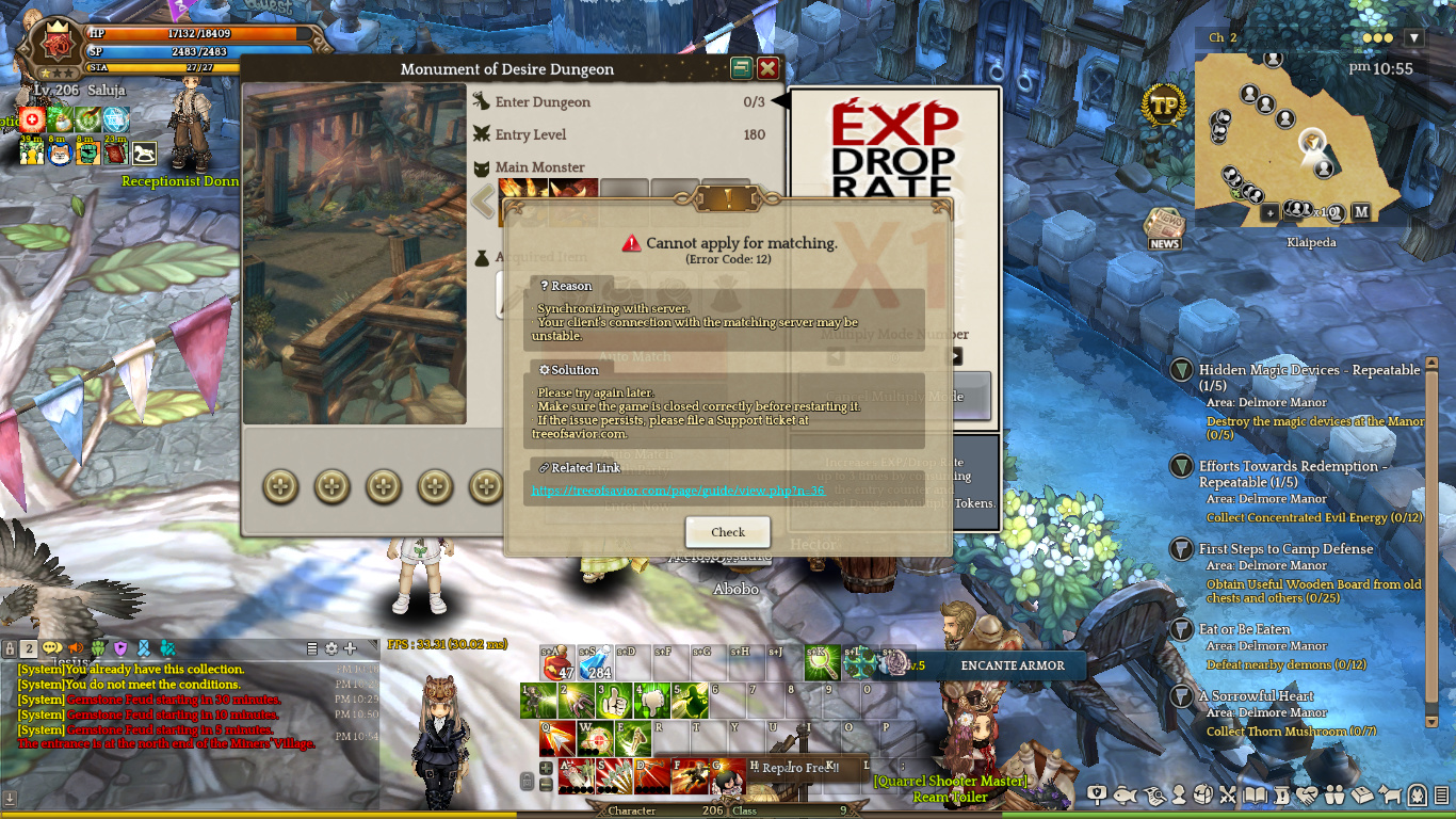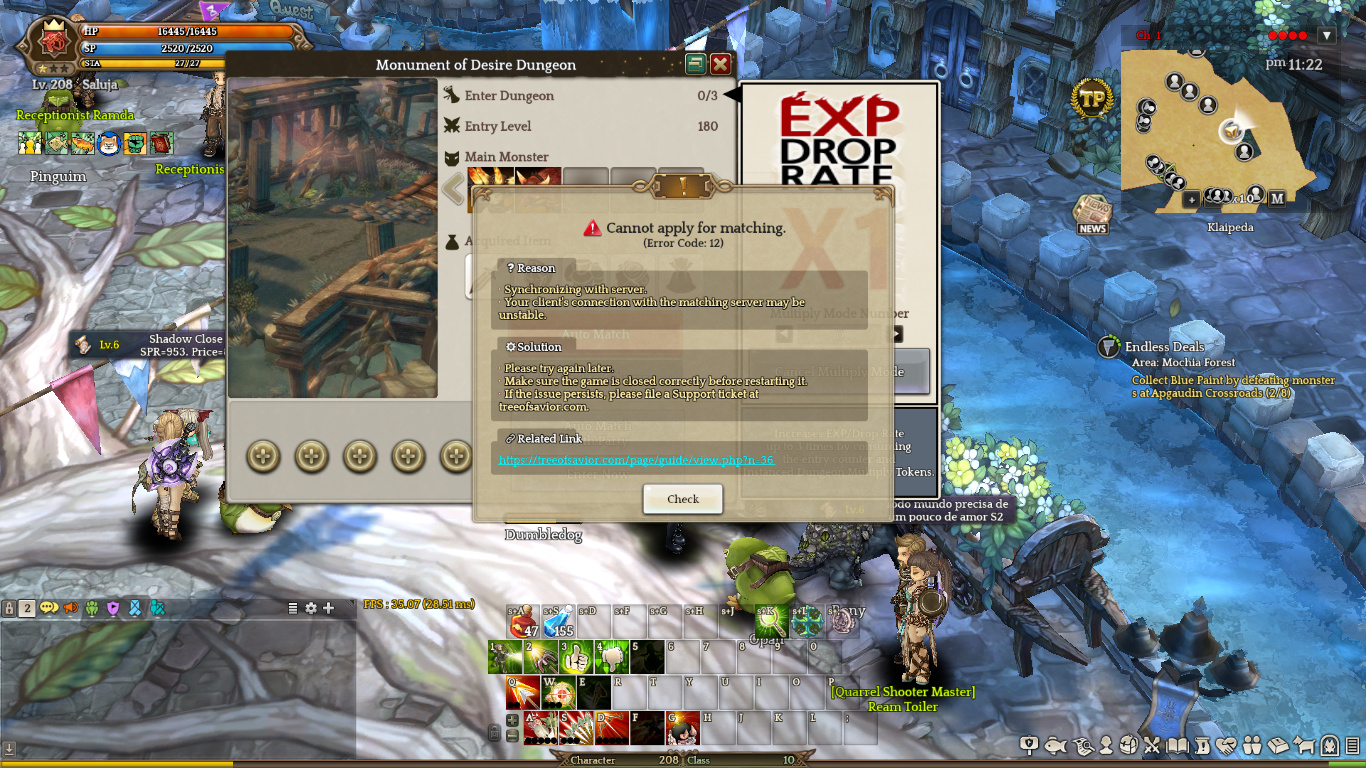 After the maintenance no one can use the matching system for Saalus, dungeon and mercenary.