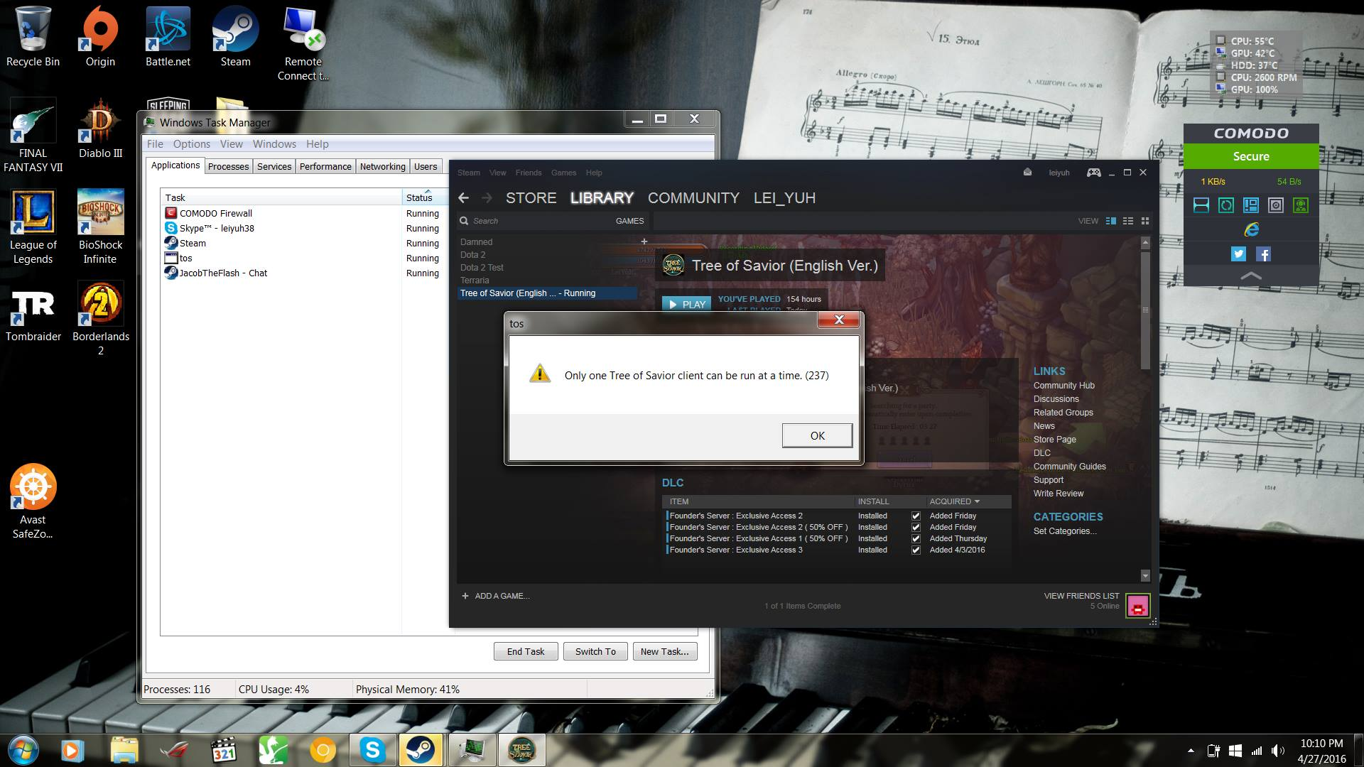 You can see there that there is no Tree of Savior running and she is not online in the game under my friend list but it keeps saying that.