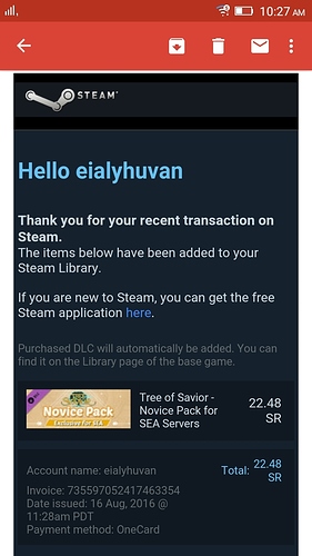 Hi I also purchase a Novice DLC pack SEA Server region.