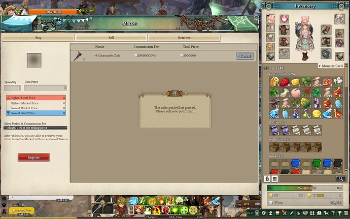 I put my Catacombs Club up for sale and now I cannot retrieve it as it states “This sales period has passed. Please retrieve your item.”