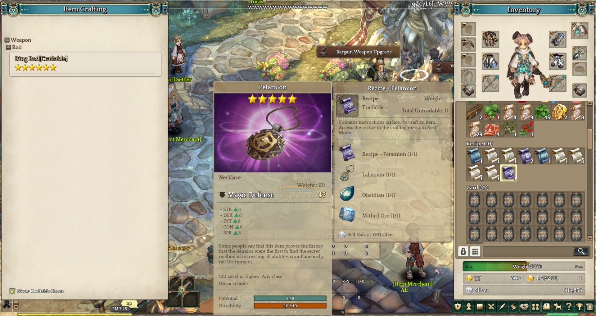 Even though I have all the materials to craft a petamion, it wont show up in my list. As you can see it says I’m able to craft a ring rod, but wont let me craft a petamion lol