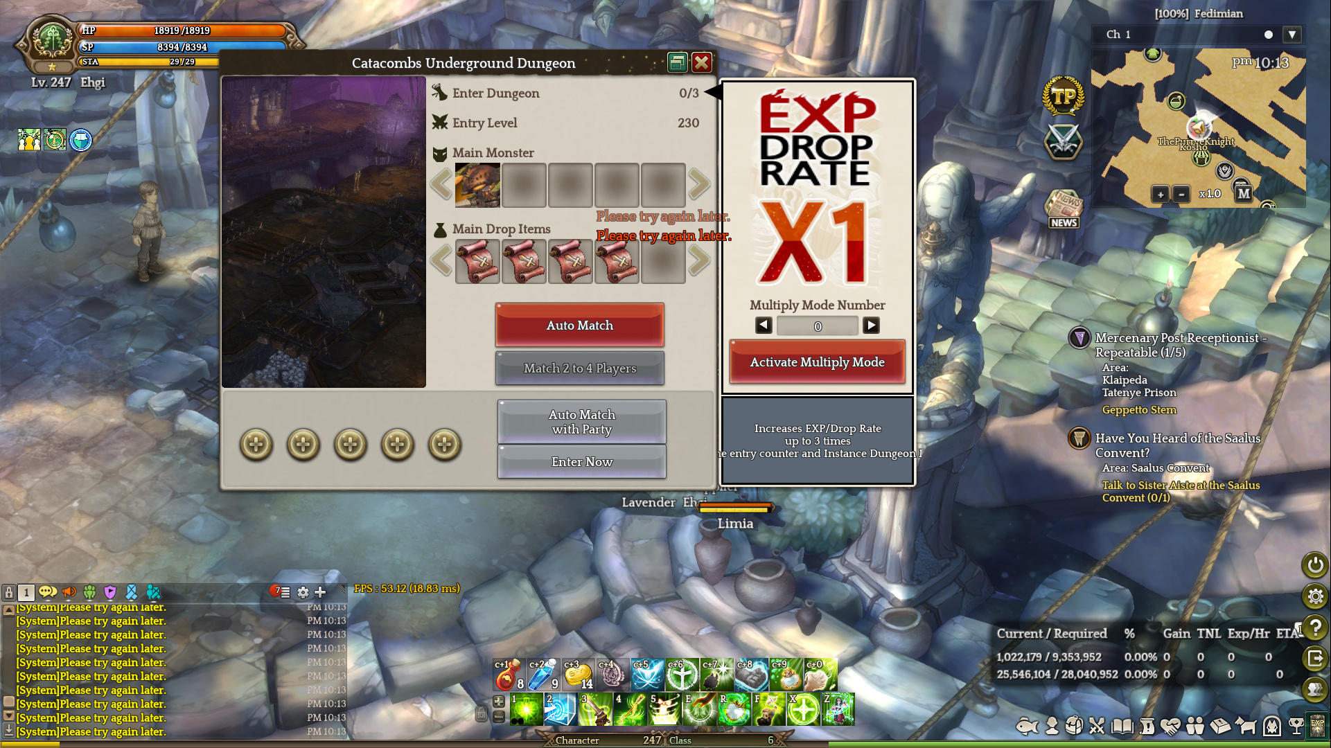 I popped a instance reset voucher on Lavender, but when I went to enter the dungeon I continuously got a “please try again later” message. I am getting this error on ALL of my toons. It is incredibly troublesome and quite game breaking. I can’t enter dungeons, I can’t enter missions, I can’t do the tamer event so I’m missing out!!! Basically I can’t do anything that requires a queue. It has been 3 days and I haven’t heard anything back outside the generic message on my ticket. Someone please help me…I swear if I don’t get compensation with all their issues going on it will be a bad joke.