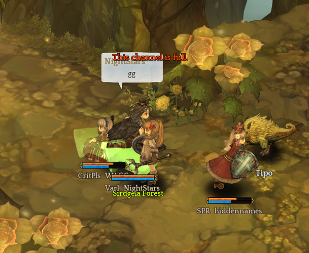 So just thought I’d let make a report here for IMC where I want to advance to next map but I can’t because it says that the channel is full. :S and I cant change channel cause there is only 1 channel here (Gate Route heading to Sirdgela Forest). Would like to stress how important it is to have more channels as this kind of problem may cause inconvenience to the gameplay.