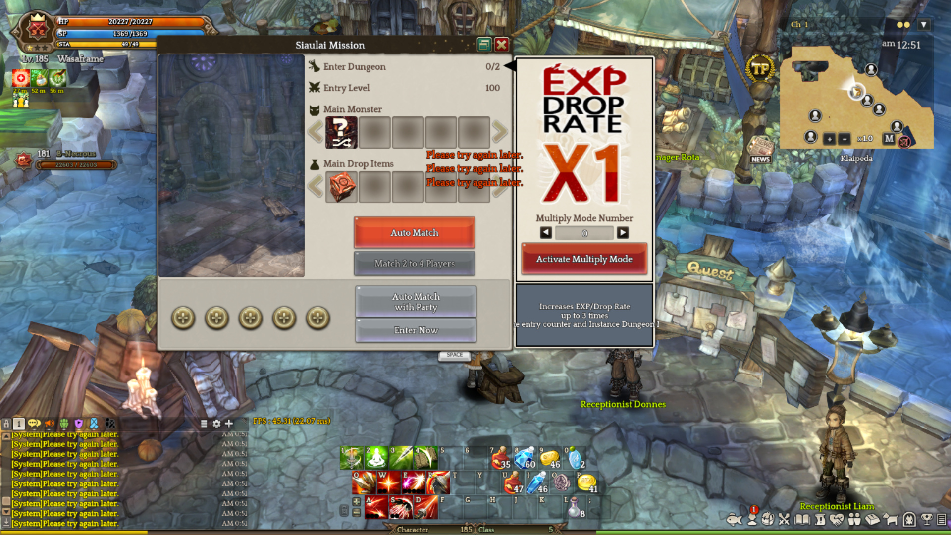 I play misson and dungeon but cant go because system : Please try again later , I restart game and steam but finally it still cant go dungeon and mission