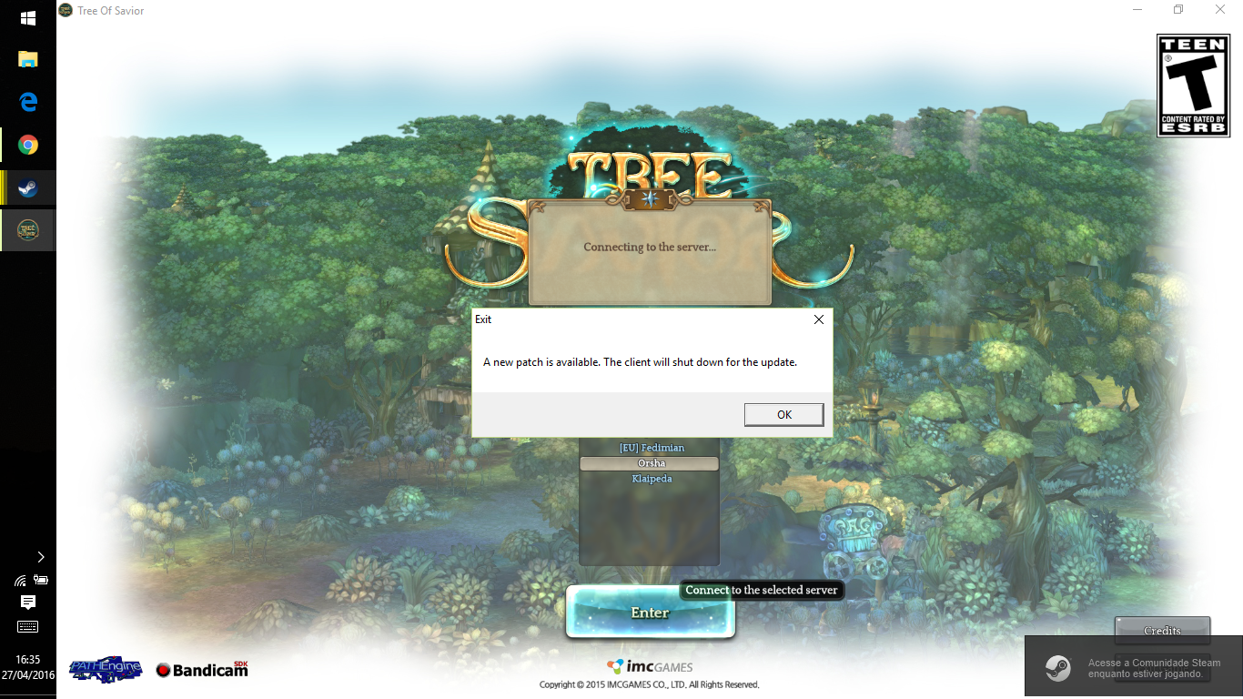 i uninstalled steam and tos again, removed everything from my pc, then downloaded and patched again, it worked, if someone have the same problem just delete the steam and tos and download and install again it will work.
