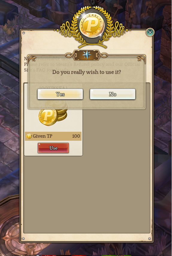 2)I try to clam tp in game by clicking (TP icon-> USE-> Yes )since i bought it from steam still cant recharge.