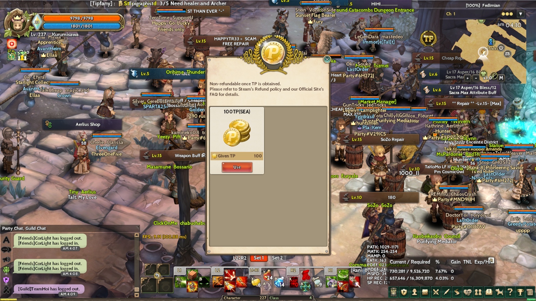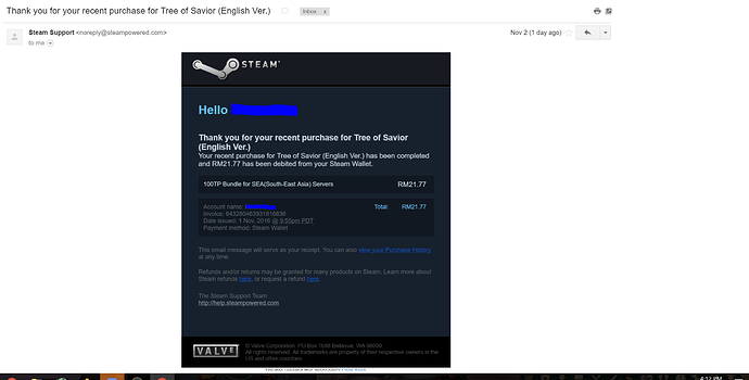 We understand your situation in the game. We would like to inform you that there was a delay in claiming the TP Bundle you have purchased on Steam. We highly advised you to keep your account online in order for our system to continue processing the redemption of your purchased TP Bundle.
